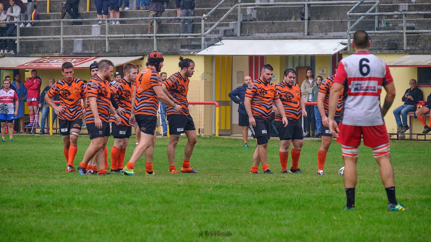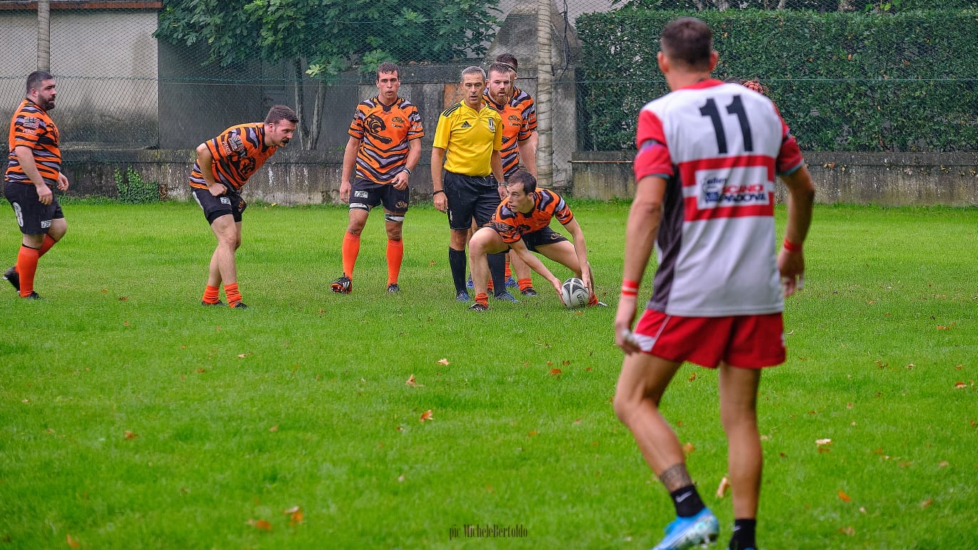 Questo ci costa una meta non trasformata ed il Monselice vola sul punteggio di 11-0, tuttavia il RAV, molto combattivo non demorde e dopo un giallo per fuorigioco d un giocatore del Monselice, finalmente l’arbitro ci assegna una giusta meta tecnica e si va sul 11-7.