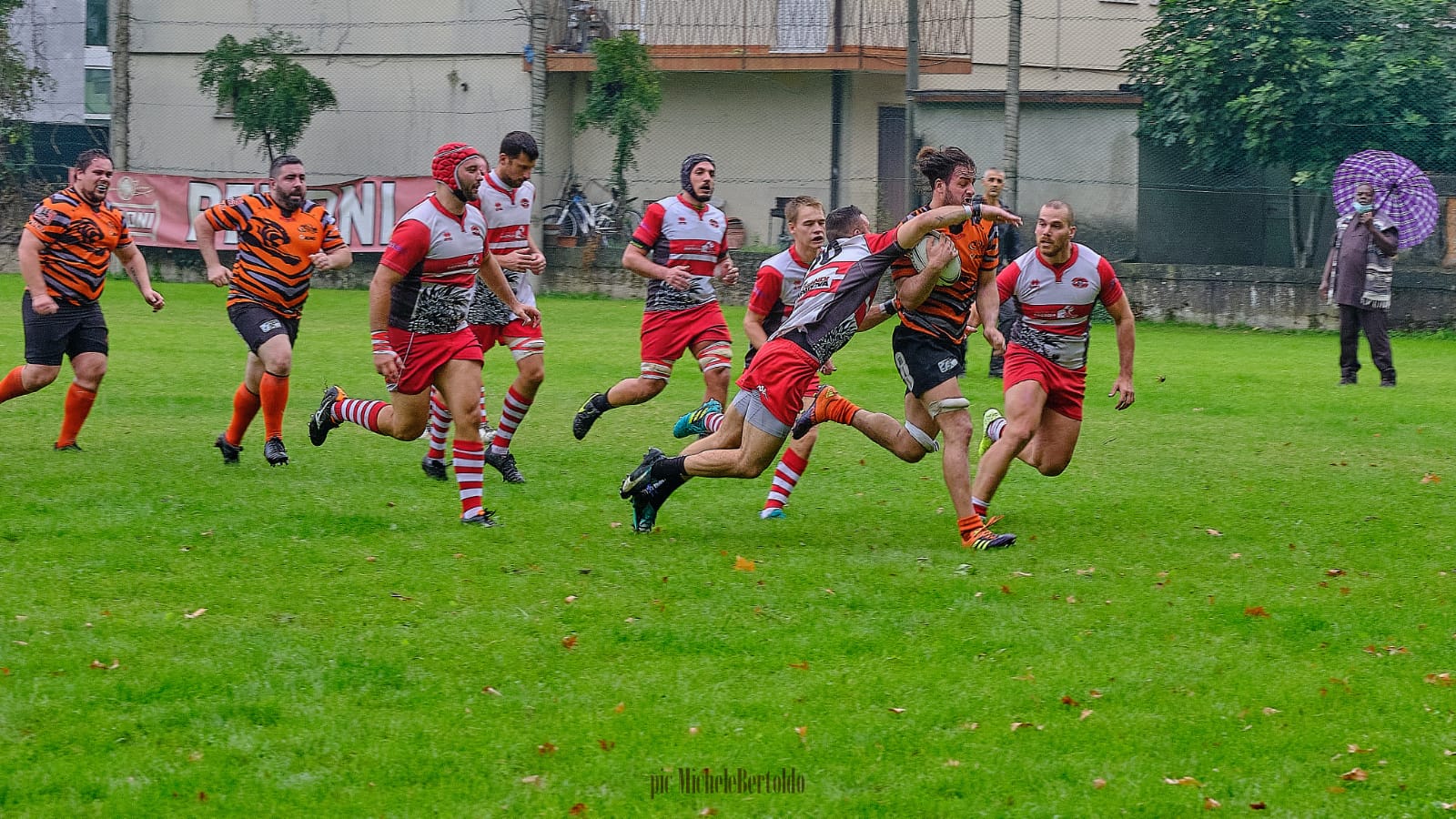 A questo punto cala il sipario e per I 4 tempi da 20” concordati gioca solo il RAV, nel bene e nel male, RAV sempre all’attacco ma causa imprecisione, perdita di palloni, peraltro era molto scivoloso a causa della pioggia, non succede più nulla fino al terzo tempo di gioco, dove Tommaso Grolla rimedia un giallo per fuorigioco sugli attacchi degli avversari vicino alla linea di meta, senza colpa specifica, ma come sappiamo può succedere specialmente esasperando gli arbitri.