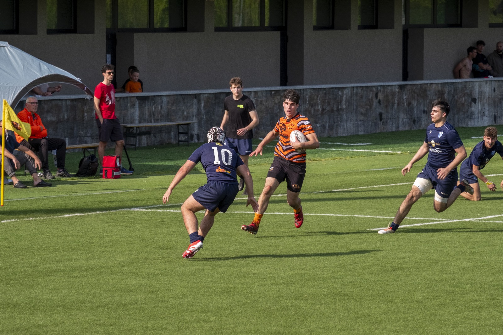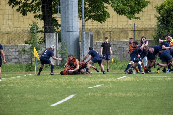 Nel pomeriggio, l’attenzione si è spostata sulla sfida tra il RAV e la Scaligera Valeggio, un match acceso che ha regalato emozioni contrastanti. L’avvio è stato fulminante per il RAV, con Henstock e Dalla Pozza che hanno marcato due mete nei primi otto minuti, dando l’impressione di una partita già indirizzata. Tuttavia, la reazione della Scaligera è stata feroce. Mischie dominate e touches impeccabili hanno garantito un costante possesso palla agli ospiti, mentre i padroni di casa hanno dovuto gestire una fase critica, giocando in inferiorità numerica a causa di due cartellini gialli. Il XV veronese, con un gioco concreto e fisico, ha accorciato le distanze al 17°, mantenendo il controllo per diversi minuti, solo nel finale del primo tempo i padroni di casa hanno saputo invertire la tendenza, andando a segno con Trento G. e Castello, che ha sfondato la difesa avversaria con una velocità impressionante.